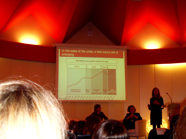 Las jornadas iban dirigidas también a un Máster de Marketing, me recuerdan a las Jornadas o congresos a los que suelo asistir yo, pero claro! no tienen nada que ver con las de Derecho, estás estaban muy interesantes y menos formales, se habló de  el fenómeno del “street style”, que en la actualidad se ha convertido en más que una tendencia, también se habló del fenómeno blogger  y como éste está generando la moda 2.0, por último nos mostraron tablas con porcentajes detallados de exclusividad y lujo. Al finalizar nos ofrecieron un catering y allí pude relacionarme y conocer a muchas blogger.