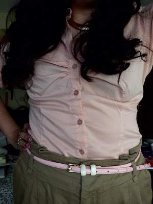 Blusa: New Yorker, Collar-cinturón :Primark, Pantalón. Stradivarius